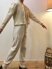 デザインのかわいいショート丈チロルニットカーディガンです。