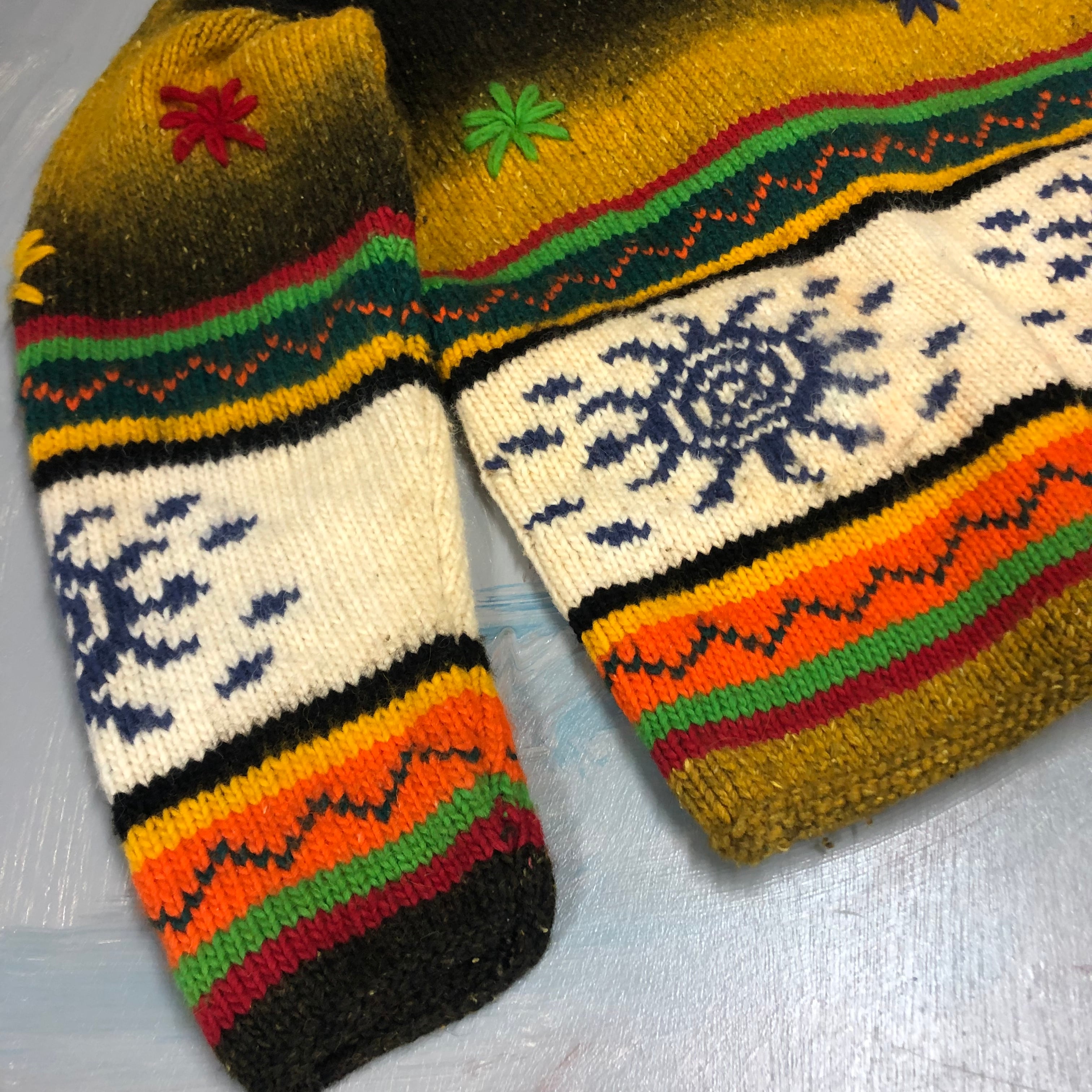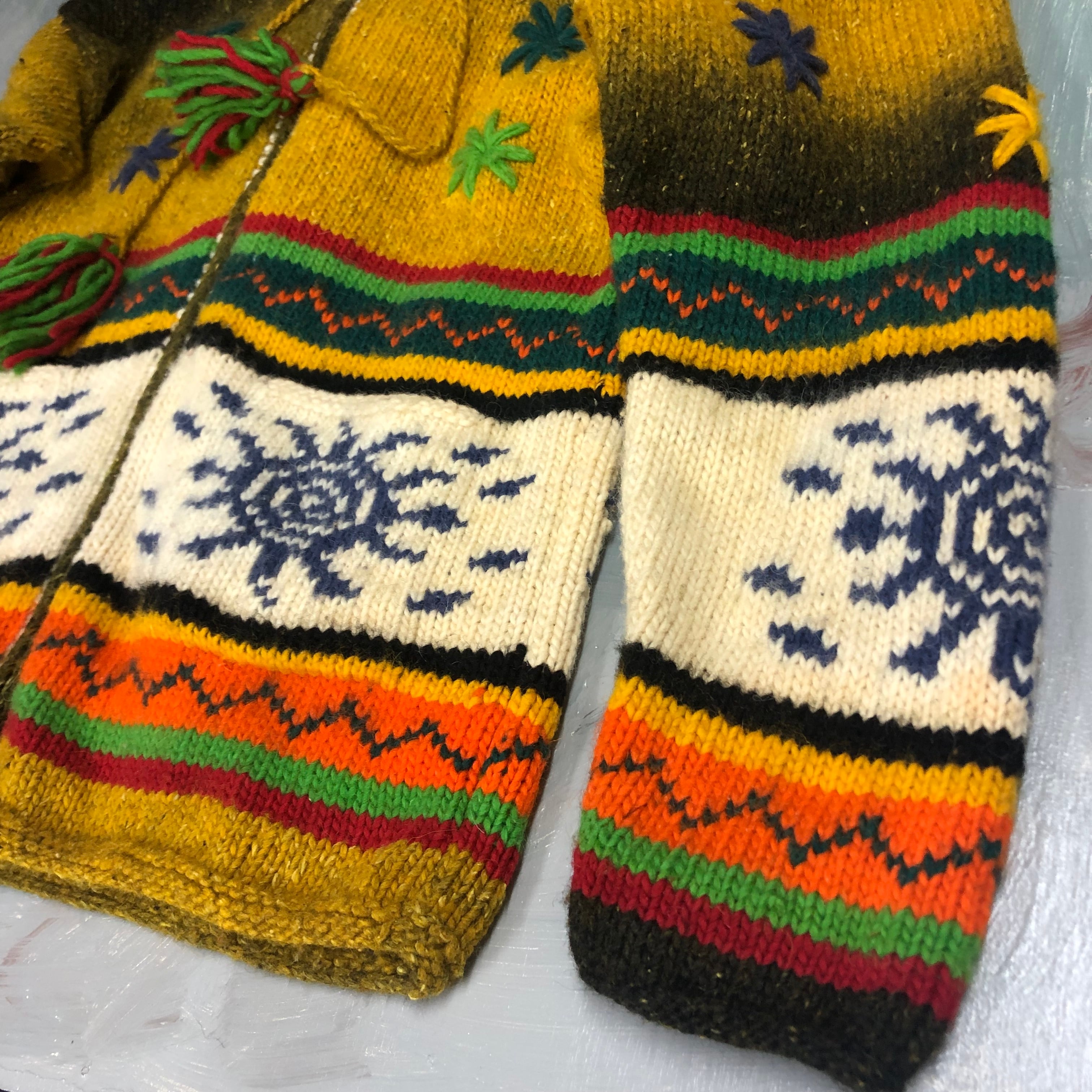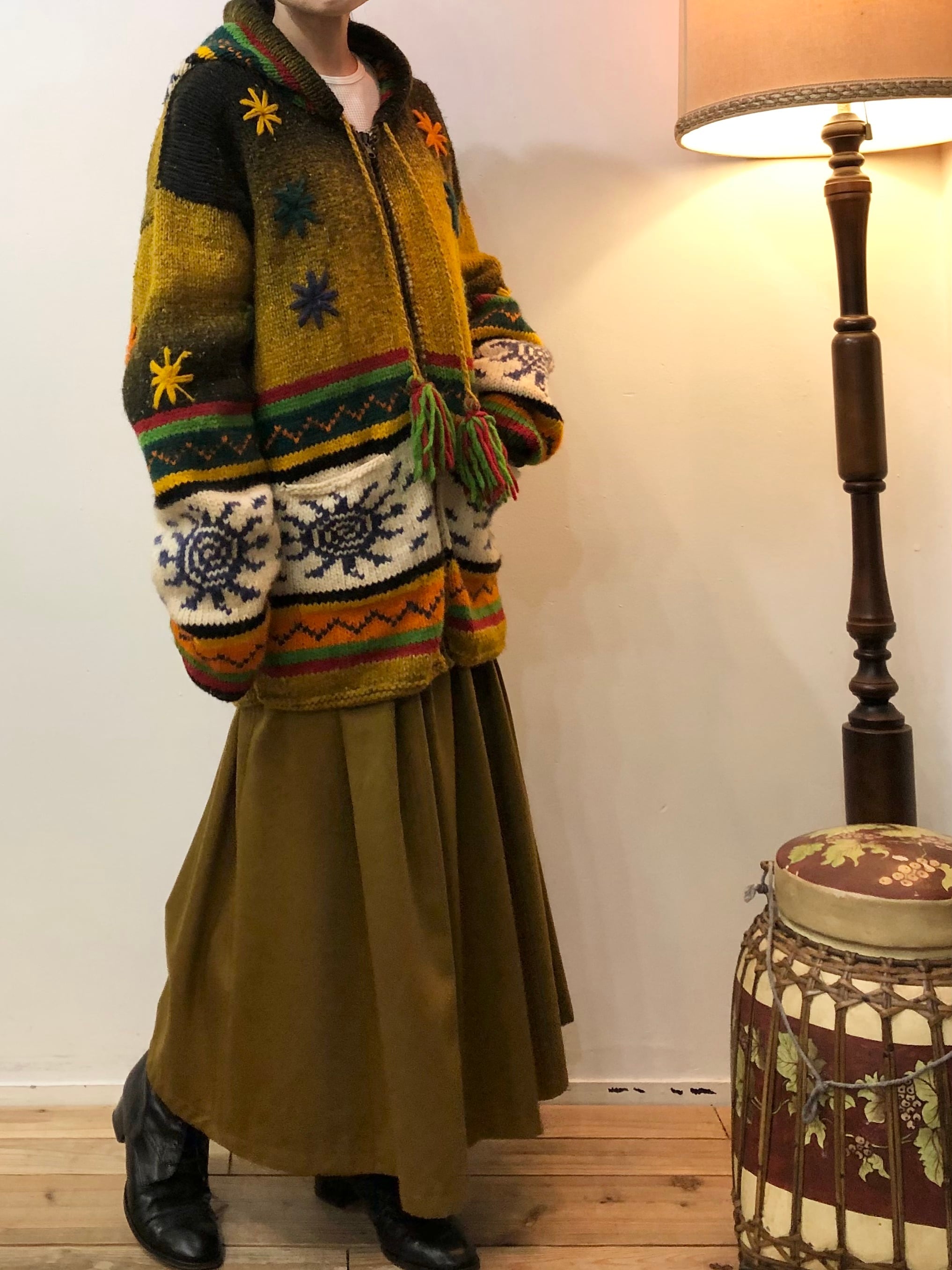 個性的なデザインのフードや派手な色合い、刺繍がかわいいニット